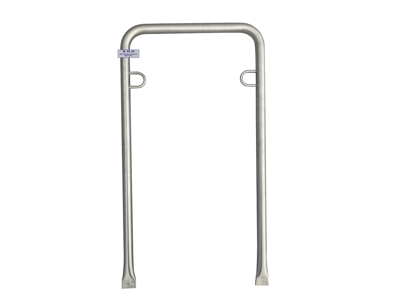 Anlehnbügel mit 2 SchlossösenMaterial: Edelstahl 1.4301 aus Rundrohr Ø 42,4x2mm (auf Anfrage auch andere Rohrdurchmesser möglich)1190mm hoch, 650mm breit (Auf Anfrage auch andere Breiten möglich).